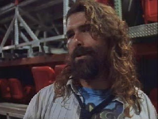 What I didn't expect, however, was that the I would find the most emotional part of the movie to be with the story of Mankind, Mick Foley. He's one of those wrestlers that does those crazy cage matches and fights with ladders and barbed wire. He ends up a bloody mess by the end of these matches and many people think he's honestly crazy and has a death wish. As it turns out he has a nice family with 2 young children and a loving wife, and he's possibly the most polite wrestler in the world. Once you get to know the real man behind the mask, it becomes a heart wrenching affair when they show his big title match against The Rock, with his wife and kids in the crowd.